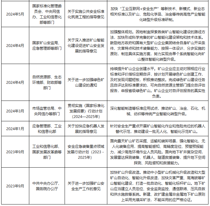我国及部门省市矿山设备行业相关政策:提拔矿
